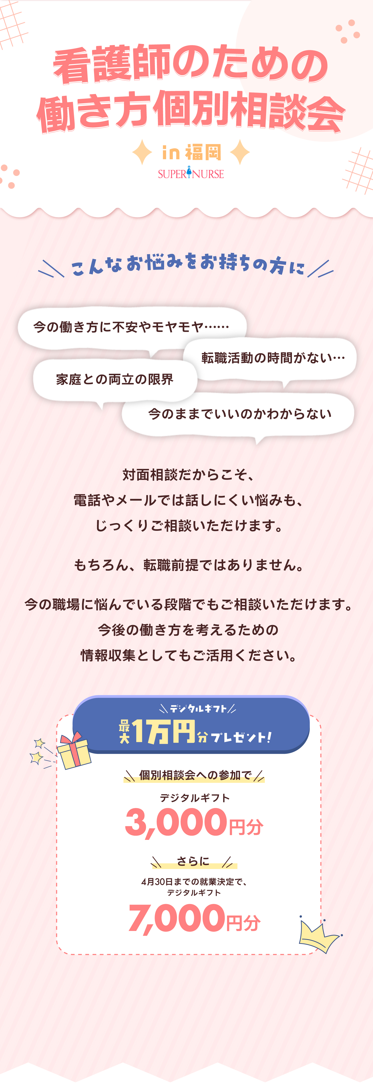 本相談会は看護師資格をお持ちの方が対象となります。